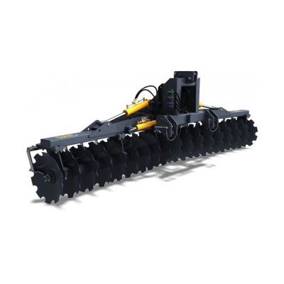 Equipment suitable to be applied at the front of any kind of cultivator to create a combined machine with several applications and till the soil at a depth of about 10-15 cm. Plus, if necessary, if prevents tillage residues from building up. The disc elements are mounted on sturdy supports with bearings fitting with conical rollers and have independent disc-scrapers. The equipment can also be applied on the tractor`s front lifter to level the soil and allow the tractor to move forward without significant oscillations in the event of uneven ground or to better balance weights in the case of large and heavy rear cultivators.