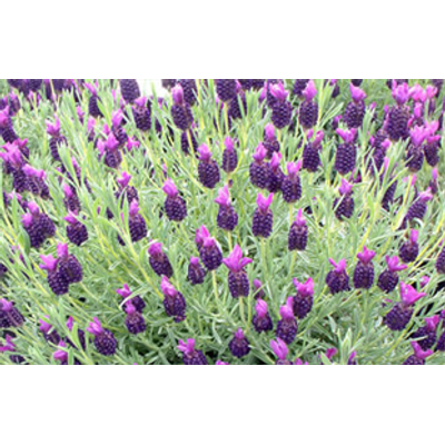 (French Lavender) A compact lavender with purple flowers and short 'ears'; on very short flower stalks. Good in a pot. Height is just 45cm (18in) Probably the first lavender to be used fo its oil (circa AD60), although not widely used for this purpose today. NB: Prefers an acidic soil. Size: 9cm pot.Ashdown Forest