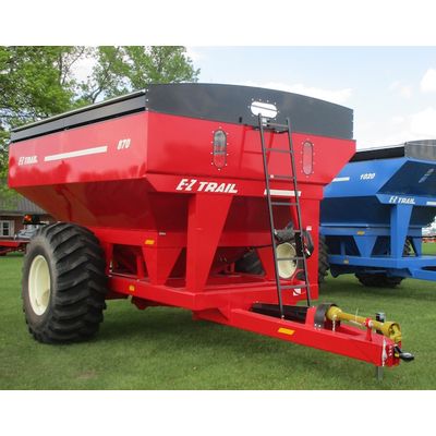 400 Bu. 8-1/2` x 12-1/2` Gravity Box on 1384B Running Gear w14L x 16.1 tires. Welding shops have inquired about selling our wagons because they weld & repair other brands of wagons, but they seldom have to repair an E-Z Trail. The oscillating axles do make a difference. Total Height: 113".