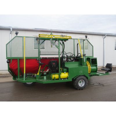 This machine can be used for harvesting, cleaning and packing raspberries (Polka, Polana, Heritage…) It is made as self-propelled machine (diesel engine 35HP). There must be 1,3m of free space between the rows.