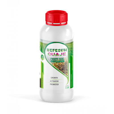 Hefesum Cuaje is a specialized bio-stimulant derived from `Ascophyllum nodosum` seaweed. It is tailored to supply plants with the essential nutrients, growth inducers, and biostimulants necessary during flowering, fruit setting, and maturation. This enhances the plant`s immune system and resilience against severe environmental stresses. The product`s application in grape cultivation involves a regimented schedule: applying 100 cc/hL 15 days before flowering, at the start of flowering, and 10 days later. For other crops, it is recommended to apply 150-200 cc/hL before and after flowering, with a repeat treatment every 8 to 10 days. The efficacy of Hefesum Cuaje in preventing fruit cupping makes it a reliable choice for optimal fertilization and fruit set processes.