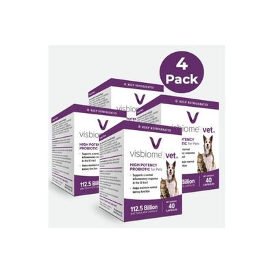 Visbiome® Vet is a high potency veterinary probiotic that supports normal inflammatory responses in the GI tract. 112.5 Billion (CFUs) live beneficial bacteria per dose, 8 strain proprietary probiotic blend. Peer-reviewed, controlled, multicenter clinical data . Helps maintain proper gut flora. Shipped and Stored Cold to ensure maximum potency .