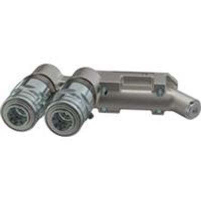 The MultiFaster 4-line hydraulic couplings, compatible with ISO 16028 standards, are designed for high-performance hydraulic systems. These couplings are female connectors with a size of 3/8 inches, offering a robust solution for connecting multiple hydraulic lines efficiently. The flow capacity reaches 40 liters per minute at 0.2 MPa, equivalent to 10.567 gallons per minute, with a burst pressure up to 100 MPa or 14503.774 psi, ensuring reliable performance under high-pressure conditions. The couplings operate effectively within a temperature range of -25°C to 100°C (-13°F to 212°F), making them suitable for various challenging environments. Weighing 3550 grams (7.83 lbs), these couplings provide a durable yet manageable solution for industrial applications that demand precise and secure hydraulic connections.