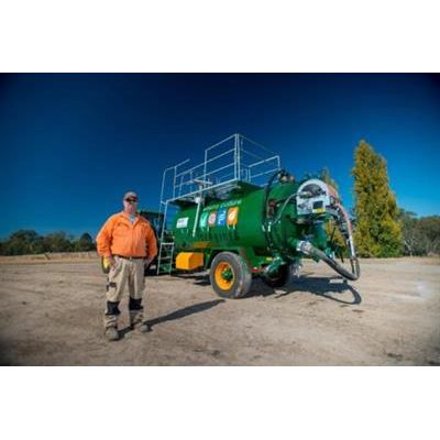 2400 gallon internally baffled tanker with a painted finish to the clients specification. Hydraulically operated road blaster bar for close contact and intense cleaning. It is lifted clear for transport. Rain gun water cannon to accesses and dampen down earth storage clamps up to 70m high. Commercial axle rated to 100km/hr with suspension for safe road transportation 8000 litre Garda pump.