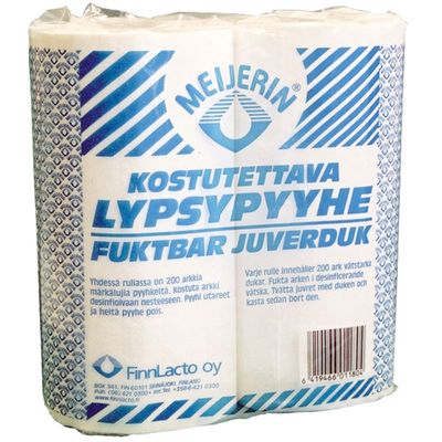 Wet proof single use udder hygiene paper; Wet it and wipe! Cleans very well – teat feeling is great; Size of a perforated paper is 23 x 25 cm; Packing: 2 rolls in polybag – each roll has 200 pieces of paper; Delivered 10 rolls on a big bag; 49 bags/pallet; Art nr 19010017.