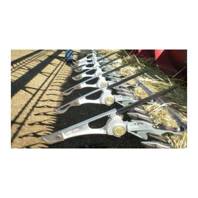 The Flexxifinger® Heavy Duty Crop Lifter™ is for harvesting a variety of different crops including pulses, cereals, rice, oils, forage and other specialty crops. The lifter rail hugs the guard and the replaceable nylon finger is held by an adjustable receptor, allowing the combine operator to fine-tune the location of the lifter’s forward lifting point for his specific conditions. The finger extends beyond the finger receptor and becomes a tail that guides the plant material over the knife. The 4 finger choices make it possible to customize for diverse crop and ground conditions.