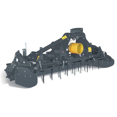 Folding Eternum Large are new generation power harrows equipped with a special self-supporting frame in high tensile steel. lts great reliability and working width from m 4 to 8 enable you to reach remarkable per-hour productivity levels. An hydraulic device allows to flex the power harrow from the tractor`s cab, making it easy to move on the road. They are equipped with special rotors with gears mounted on taper roller bearings and can be provided with the patented Rapident system for the rapid replacement of tines from the centre of the rotor on demand. Ideal for large crops.