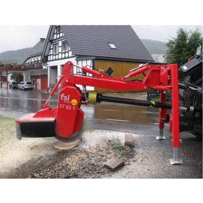 FSI T65 is an attachment for tractors and similar machines with a PTO outlet. The frame and 3-point linkage (cat. 2) ensure stability during grinding. All movements are controlled via the joystick, the control box also has an option to adjust the speed of the swing movement. Includes joystick control and PTO shaft.