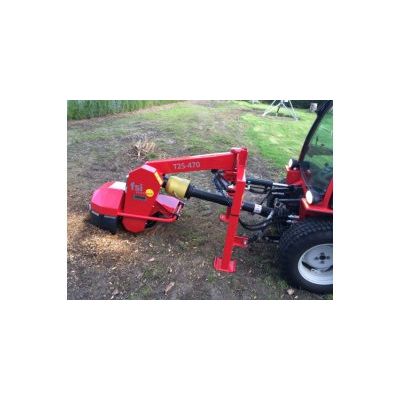 FSI T25 is an ideal attachment for smaller tractors and similar machines with a PTO outlet. The frame and 3-point linkage (cat. 1) ensure stability during grinding. All movements are controlled via the joystick, the control box also has an option to adjust the speed of the swing movement. Includes joystick control, PTO shaft and hydraulic top link.