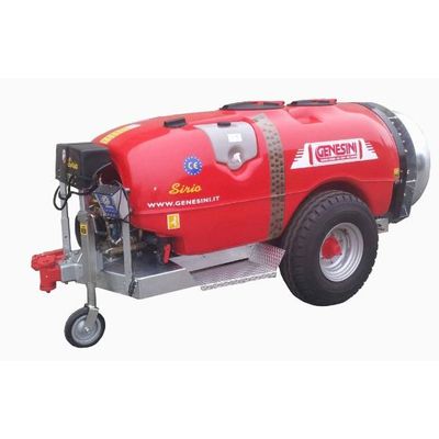 General features of the product: Tank in glass fibre (fibreglass). Hand-washing tank. Circuit-rinse tank. Pump 100-170 in brass. Output filter. Suction filter. Manual diverter unit. Premixing basket. Accessories control valves. Double lid. Galvanised steel frame. Brake axle with mechanical brake. Axle without leaf springs. Complete tank drain with valve. Nozzle rear attachment. Wheels .10.075-15