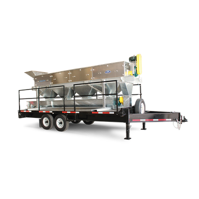 The Gentle Roll™ Mobile Screener is engineered for optimal mobility and versatility in grain separation and cleaning across multiple locations. Unlike the standard version, it offers enhanced options catering to specific needs and applications. Primarily used for the separation of mixed grains, its utility extends to cleaning grains such as barley, wheat, and soybeans. It accommodates customization as a standard feature, ensuring each machine meets the specific requirements of its user. The screener's performance is based on handling dry, free-flowing products with a bulk density of 720 kg/m3, achieving a capacity of 1900 cubic feet per hour per drum. Capacities may vary based on grain composition. The mobile model is constructed with high-quality materials to ensure durability and efficiency. It is suited for small to large capacities, with model variations available to fit diverse production scales and space constraints.