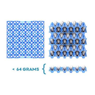 Outside dimensions: 299X299X50 mm; Capacity: 30 eggs medium – large (up to 74 g); Weight: 0,145 kg – tolerances +/- 0.003 kg; Shipping capacity: 55.000 pieces per 20’ cnt; 115.000 pieces per 40’ cnt; 126.500 pieces per 40’ HC.