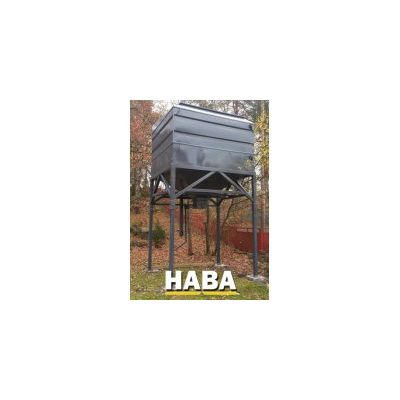 6, 10 ja 16 m³. Durable, steel structure, sand blasted bottom, grounded and painted (standard colour RAL 7005, grey). Cover opening by hand operated winch. Lockable clamshell dosing feeder. Adjustable feet. Dimensions of silos are changeable according to client’s needs.