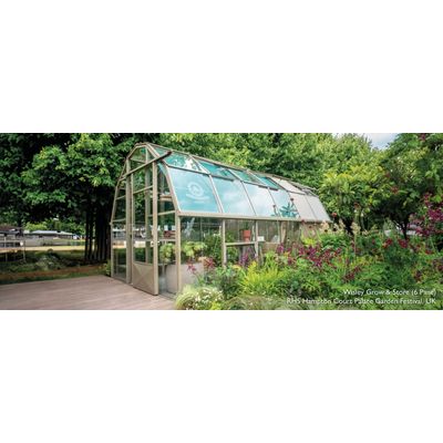 The Wisley 8 Grow & Store is a Greenhouse design classic. Its semi dodecagon clear span roof shape is a proprietary Hartley Botanic design which maximises both internal growing space and light. The Hartley Wisley is designed for all-round sun, with unobstructed, large panes of glass and a minimum of metalwork supporting the panes for a lightweight yet robust design. The addition store area, means tools, pots and working areas can now be hidden from view, leaving you with a timeless Greenhouse aesthetic filled with your beautiful plants.