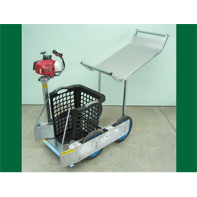 The HT - Shaver - FB (Flat Bed) harvester is designed for harvesting flat bed or field grown plants. As the engine protrudes out one side, the engine must be in a walkway or over the harvested area of the field. It can also be used on wide raised beds. Due to the frame layout it does not have enough clearance to travel over uncut crop so must be carried over these areas. Crops harvested include leafy salad plants and low growing herbs such at thyme. Also available as a self propelled model, and / or with 24v DC power to drive the cutter bar and belt (plus wheels in the case of the self propelled model)