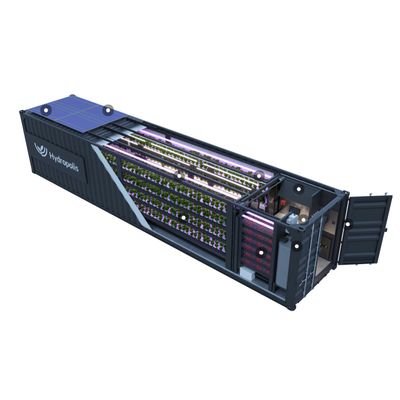 Smart Crop technology for vertical farming: Smart Carts growing columns, Grow Wizard software, Full spectrum HydroLED lamps, Closed hydroponic system, Intelligent nutrient dosing system, Nursery station, Farm automation, Cooling and heating system, Disinfection zone, Optional: solar panels