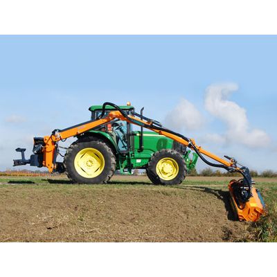 Operation with carrier system Easily demountable to free the vehicle quickly Arm with pantograph system Second arm with removable terminal Head with free flow chassis to avoid traffic jams inside the head Helical structure rotor for constant coverage of the belt under maintenance Interchangeable knives for different mowing needs