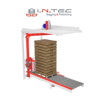 Agropal means safety and precision, from the first belt that collects the bag to the completely built pallet this palletizer model is different as it is specifically designed for products with great stacking difficulties. That is why it is necessary to discharge the product vertically over the pre-layer zone and load assembly inside a mould with frontal and lateral opening capacity. Another advantage that this model has is that it automatically adapts to different pallet widths.