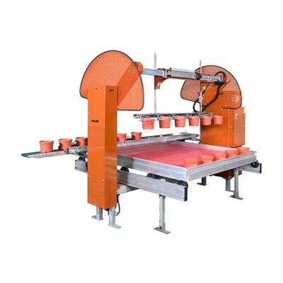 The completely redesigned Javo PPU 2.0 offers the solution for automatic placing of round and square pots onto transport wagons. The unique movement of the Javo PPU 2.0 ensures that the pots will always be placed upright on the transport wagon.