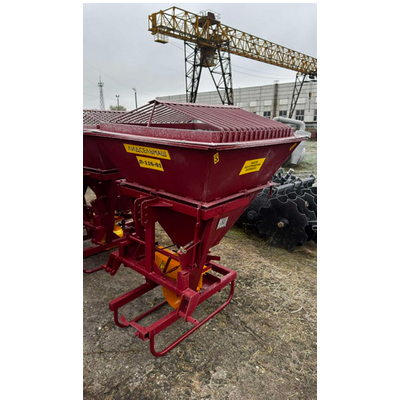 This potato planter is designed for row planting of unsprouted potato tubers in all soil types with row spacings of 70, 75, and 90 cm. It is coupled to 1.4-ton tractors (MTZ 80/82, MTZ 100/102). The potato planter can be loaded from any dump truck. The potato planter is equipped with a fertilizer spreader.