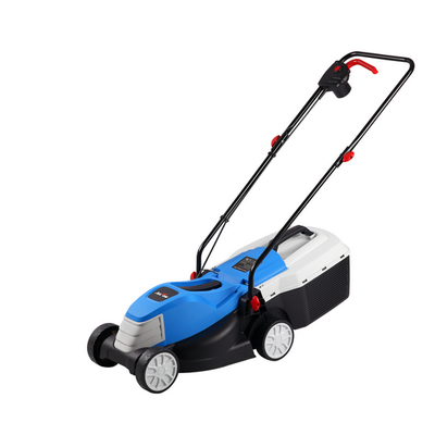 Rated Power: 230V~240V-50Hz,1000W/1200W. No-load speed:3450rpm. Cutting capacity:320mm. Adjustable 3 height position:25-45-65mm. Collection bag:25L plastic. Wheels: 5.5"" (PP wheels with cover). Motor type: Brush motor. Colour box packing