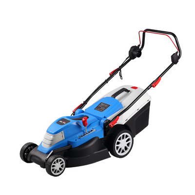 Rated Power: 230V-240V-50Hz,1400W/1500W. Cutting width:340mm. No-load speed:3800rpm. Central adjustment: 5 height positions with 25-65mm. Collection bag: 35L Plastic. Motortype: Brush motor. Wheels: 5.5"" (PP wheels with cover). Colour box packing.