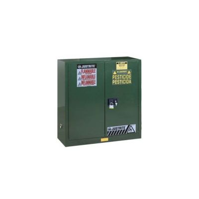 Pesticides present a substantial danger to people and the environment when improperly stored. Pesticide safety cabinets allow segregation of liquids stored at the worksite, eliminating the potential for drips and spills during the transfer of pesticides. Dissimilar pesticides stored separately prevent one from contaminating another or the accidental use of the wrong chemical.