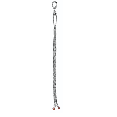 Use mesh grips for pulling irrigation PVC and poly pipe, directional boring pull backs, insulated wire, wire rope, tubing and bare conductors. This mesh grip has a swivel built in to the grip. It is 32", triple weaved, has a work load of 2500 lbs, and a pipe range O.D. of 1-1/4" - 2".