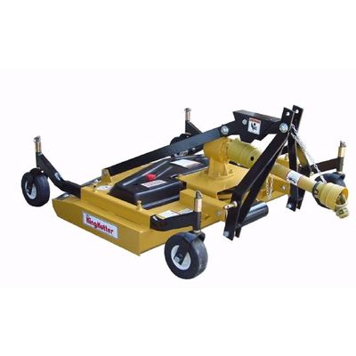 60" Rear Discharge FM King Kutter`s Free Floating Flex Hitch Rear Discharge Finishing Mowers lead the way in performance and quality. It is constructed of heavy 3/16" deck material, heavy-duty wheels, and heat-treated 1/4"-thick blades. The versatile machine mows on level or unleveled ground. Standard equipment on all King Kutter free floating finishing mowers includes a 40hp gearbox, shielded PTO shaft, gauge wheels and a self-tightening belt that reduces slippage. King Kutter`s specially designed free floating flex hitch system allows the mower to follow the contour of the ground, thus mowing evenly on uneven ground. This Rear Discharge Mower has a totally open rear deck with belt guards, that allows the grass to be safely and smoothly discharged giving your lawn that rich, manicured look that will make your lawn the envy of the neighborhood. Also available in the 7` Stainless Steel model.