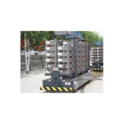 Automatic trolley for harvesting and crop-tending. An induction wire in the floor guides the AGV on its way through the greenhouse and processing room. The AGV is mostly used for harvesting sweet-peppers (paprika) and tomatoes. Paprika: the AGV with container goes in front of the harvest person. The contianer goes up, together with the harvest person. Tomatoes : the AGV goes in front of the harvest person. When a path has been harvested the AGV will bring the full boxes or containers to the processing room and bring back an emprty container of boxes.