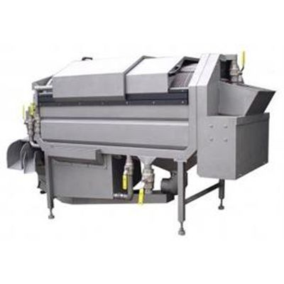 The BR600 Barnacle remover is designed to remove barnacles from mussels. The mussels are fed to the Barnacle remover. The removing of the barnacles is done by means of a rotating perforated drum with therein a mill rotating in the opposite direction. The drum rotates in a water-filled collection bin. The abrasive effect releases the barnacles from the mussels. The cleaned mussels are discharged via a conveyor belt, the barnacles enter the collection bin. The Barnacle remover is available as a stand-alone machine or in combination with other processing machines.