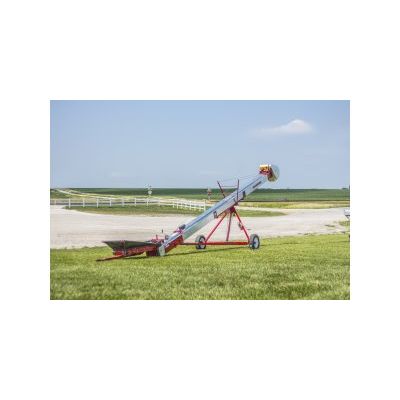 Designed with a low-profile hopper and a fixed length of 37’, this conveyor was created to transfer grain from a bin discharge to semi trailer in ~10 minutes. The conveyor is also outfitted with a hydraulic mover for convenient maneuverability from bin-to-bin. The complete hydraulic field mover option includes a hydraulic mover and hydraulic conveyor drive for field portability.