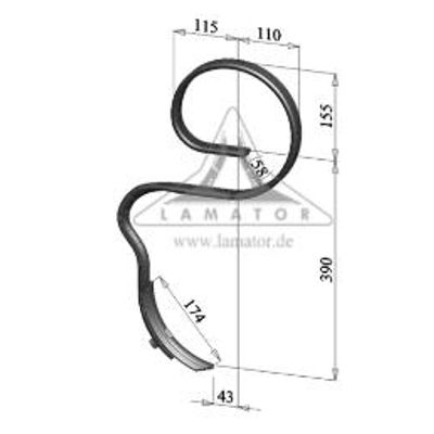 The group of harrow tines represents the smallest size of the spring tines. They are used in the fine tillage. They differ in one part of the installation height and on the other hand in the geometry. The material cross section is mostly 25 x 8 mm; some prongs have a cross section of 32 x 10. The installation height is 250-340 mm.