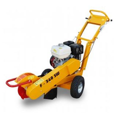 Our handy stump cutter LASKI F360 SW is based on long-term experiences with our field-proven model LASKI F350. This machine is designed for cutting a stump, i.e. its above- and also under-ground part. Max. stump diameter to be cut is in fact unlimited (recommended up to 300 mm). Due to its swivel base this machine newly facilitates swinging motions of the head also horizontally. Braked chassis provides good stability of the machine. Automatic locks of the upper turnable part on the chassis and easy machine attendance facilitate any handling at work. Overall width of 650 mm makes also limited spaces and narrow sites more accessible.