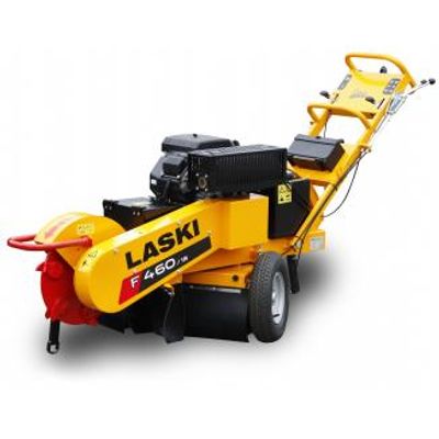 Our stump cutter LASKI F460 is based on our field-proven model LASKI F450. This machine is designed for cutting of above- and under-ground stump parts by cutting in a swinging way. Max. stump diameter to be cut is in fact unlimited (recommended up to 800 mm). Due to its swivel base this machine newly facilitates swinging motions of the head also horizontally.Automatic locks of the upper turnable part on the chassis and easy machine attendance facilitate any handling at work. Overall width of 780 mm makes also limited spaces and narrow sites more accessible.