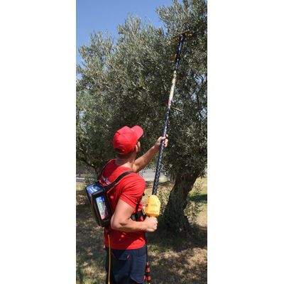 Oliwatt 2 is the electric harvester designed to facilitate the collection of olives in the roughest terrain. Oliwatt 2 is the first electric shaker comb to offer the same performance and productivity as a pneumatic system, while eliminating the need for a cumbersome air compressor. The use of carbon fibre extension arms make the system extremely light yet incredibly strong. This is a battery powered olive harvesting shaker comb, thus needing no compressor. The comb is powered by a latest generation 12V motor offering superior performance and reduced power consumption.