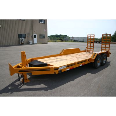 Deck overs allow combined loads with their large deck areas and this ABS Air Brake unit offers 28,000 lbs GVW. and has the capacity to haul Rubber Tired Backhoes or smaller dozers. A hardwood deck is a standard feature, however it is also available with a rugged steel checker plate.