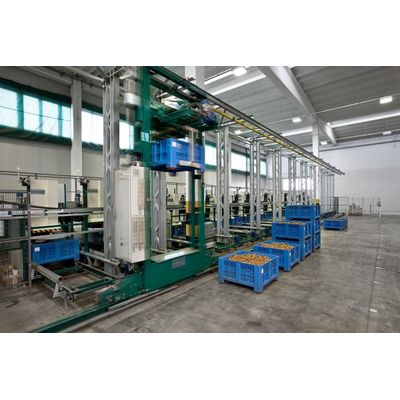 MAF RODA AGROBOTIC crate palletisers can be easily integrated within our turnkey grading and packing line solutions. The graphical user interfaces developed for the palletiser operations enable clear and rapid intervention. Palletiser management can be integrated and operated using mechanisms and technical resources put in place for traceability management.