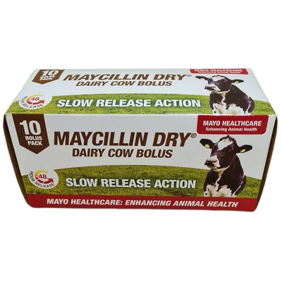MAYCILLIN DRY is a Dairy Cow bolus for use in cows during the drying off process.