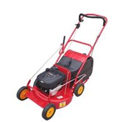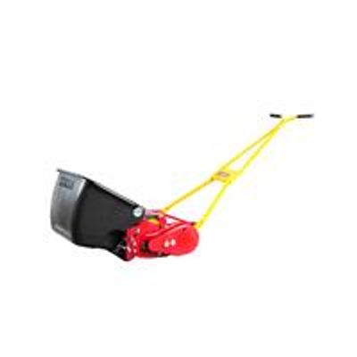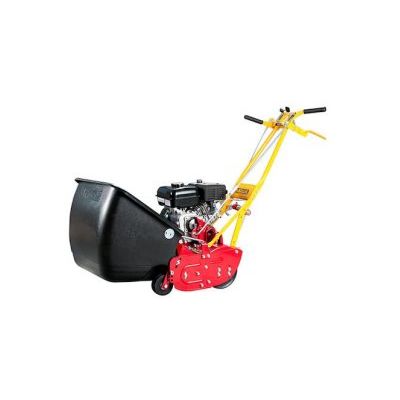17" cutting width. 10 blade reel. 3/16"to 1" cutting height. Single wing nut for easy height adjustment change. Front and rear wheels adjust to keep mower level. Chain driven. Baked polyester powder paint. One side specifically designed for close-in cutting within 1". Precision sealed ball bearings in reel.