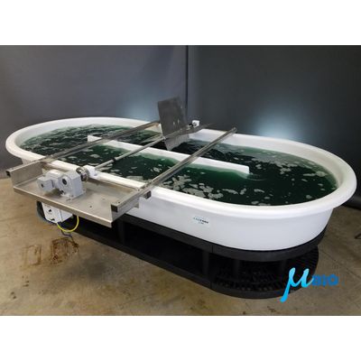The work horse of the research field. This raceway is the perfect size for outdoor research in culture development. 950 liters of volume allows for biomass harvesting for analytical research. This new design features an integrated center divider island that helps prevent contamination.