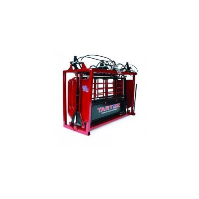 Introducing the Tarter CattleMaster Series 12 hydraulic chute. Features 3 lever hydraulic control for headgate, tailgate and squeeze and has a fully integrated hydraulic tank with hydraulic fluid and filter included.