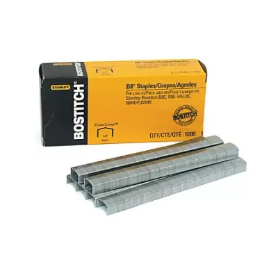 Bostitch B8 Staples (STCR2115) are premium staples constructed from high quality carbon wiring for use with the Bostitch B8 Heavy Duty Plier Stapler. Staples feature PowerCrown technology to increase penetration and reduce buckling.