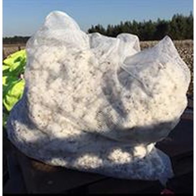 White monofilament mesh bags for cotton harvest. Holds approx. 30lbs (13.6078kg) of cotton. Makes weighing cotton easy. Tags attach to bags for plot identification.