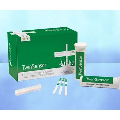 Hermostatic device for heating up samples for detection of inhibitor substances in cow, sheep, goat milk etc at constant temperature. Using power supply 12V-24V or AC/DC adaptor 100-240V /AC.  ; Twinsensor BT  ; is a receptor-based assay in a dipstick format for detection of β-lactam and Tetracycline antibiotic groups present in milk samples.
