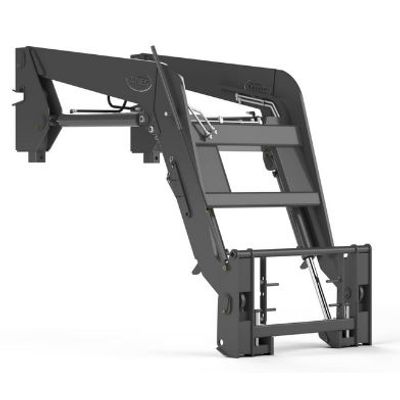 Mast mount, designed for machines with limited space between the front tires, fuel tanks and exhaust systems. Machines with longer hoods are best accommodated with this loader. Requires newer machines (approximately 1996 and newer) which provide mounting to the tractors frame/castings.