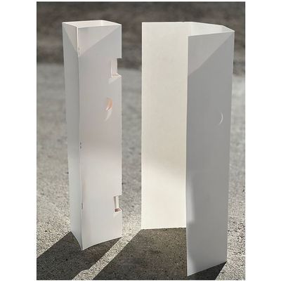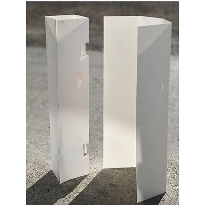 Paper plant protectors. Recyclable/biodegradable. These unsealed protectors are white, poly-coated paper(milk carton-like material) with a 3.75" diameter. They include a pop-out stake slot for bamboo or metal stakes and a tie hole as well. Great for vine protection and tree protection on plants that already have established canopy/growth. Used to protect plants from herbicide overspray, sun, and wind. They also provide a micro-environment which supports the transition of plants from nursery to field.
