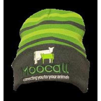 Look stylish and stay warm in this custom made Moocall Beanie.