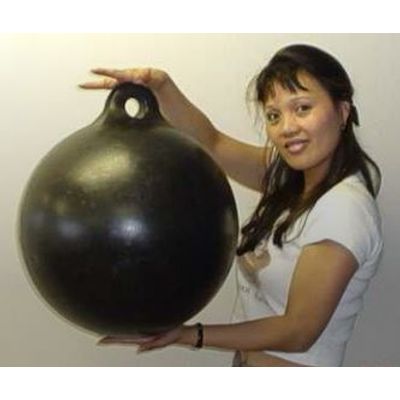 Our Smaller black Mussel Bouys are individual 16” diameter balls with a single attachment lug to secure them. These bouys can be used to support longline systems as well but are not capable of supporting the weight of heavier “stacked tray” growing apparatus which are sometimes hung from the Double-Line Barrel bouy supported style.