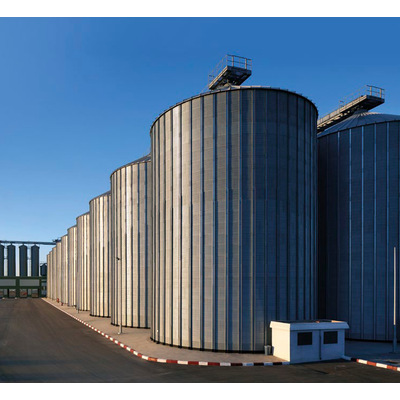 The flat bottom grain silos (FP series) is used for the storage of granular cereals with maximum apparent density of 0.85 t/m3. It is installed on a concrete base in which ventilation channels can be obtained. In the storage flat bottom grain bins loading is performed through the central dome both by means of pipes and conveyor devices positioned on dedicated gangways. Silo unloading is done by means of mechanical conveyor devices positioned both in the subterranean tunnels or in the channels obtained in the base. In silos of greater size and height, side unloading channels can be fitted (usually installed on the 10th ring) for partial silo unloading without the need for mechanical devices.